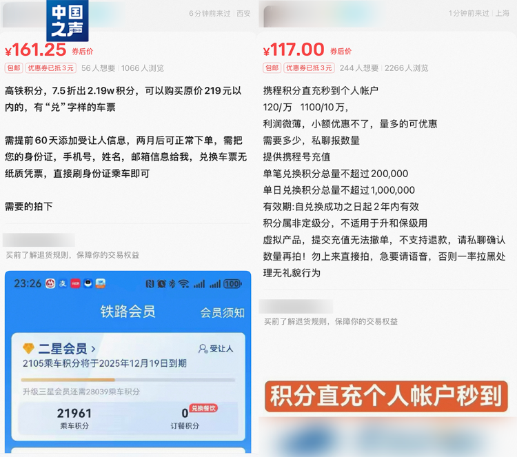 现在,人们乘坐火车、飞机等交通工具出行后,只要注册成为会员,相应的里程积分就会记入账户。有人选择积累少量在平台兑换礼物,也有人通过积分换免费门票做“生意”。记者发现,铁路、民航、酒店等多个领域都有积分付费交易。那么积分可以共享吗?消费者在电商平台购买积分可能面临哪些风险?火车票30折?用积分换门票已经成为“积分生意”。近日,有网友发帖称,某二手电商平台正在nRail低价销售12306会员积分换取车票,引发热议。记者致电铁路客服12306,工作人员明确告知,里程积分不可转让,但可以使用由其他人添加“受让人”。但添加“受让人”后,无法立即换票。有两个月的审核期,退款和积分兑换变更也有限制。 12306客服:积分不可转让。只需打开应用程序,铁路会员即可将乘客添加到“受让人”页面并为其他人购买车票。但需要60天才能生效,并且必须提前添加乘客。基于积分的门票不可退款且可以更改,但您必须支付 1,000 积分的更改费用。与火车旅行的会员规则类似,中国之声航空公司工作人员也表示,航空公司对于会员里程积分的使用场景也有明确的要求。航空公司工作人员:一般情况下,如果您将亲友添加为“受益人”,您就可以使用积分兑换机票或其他服务。上限为添加13人,但“受益人”一旦添加就无法删除。瓦时at最初的目的是作为朋友和家人之间的类似礼物的活动,在支付费用后变成了一项业务。记者在某二手平台注意到,对于火车、飞机等明确积分不可转让的商品,商家会贴出使用规则,说明添加“受让者”的审核时间,并给出“原火车票30折”的价格来吸引关注。而一些可以直接转酒店积分的帖子,无需过多宣传,就很容易引起关注。 △二手买卖网购积分平台积分被冻结。买家遭遇“钱财两失”。河南的张先生通过社交平台了解到可以花钱购买酒店积分,于是根据商家的帖子进行了购买。 “我买了10000多积分,差不多1000多块钱了。我买积分不是为了便宜订酒店,而是因为积分有点缺,我想要张先生本意是在二手平台上有信用良好的商家购买积分,但在实际交易过程中,酒店对积分的录入提出了质疑。“酒店只允许积分在亲友之间转让,并不想买卖积分。 “金额较大时,酒店会要求对方提供身份信息,但我和商家沟通后,他拒绝提供这些信息。”张先生说。最终,张先生无法提供所谓大臂转让者的身份信息,而他自己的会员资格也被酒店冻结。张先生表示,自己损失很大,维权成本很高。这笔交易对提供付费服务的商家来说没有影响,但对消费者来说却是一种压力。 “如果账户不被冻结,商家就可以正常交易,店铺的信用就会增加。如果ACC金额被冻结,客户不会成交,也不会提供信息帮我解封。如果我不能说明别人的来源,积分可以退回到他的账户上,他可以用积分卖给别人。”△张先生的聊天截图缺乏保护,信息泄露,维权无从下手。消费者面临诸多风险。记者搜索黑猫投诉平台,发现很多人购买积分后,在兑换过程中遇到了问题。业内人士表示,“商家通常会以低于市场价格的价格为诱饵,吸引用户购买。”受骗了。看到此类宣传,首先应提高警惕。二是优先通过正规渠道购买机票。大型OTA(在线旅行社)对供应商有严格的准入和服务要求。暂停。付费积分还有一个不容忽视的隐患——个人信息泄露。黄北京数字经济与数字治理法治研究会副秘书长尹旭认为,无论转让还是转让,消费者的个人信息都必须交给商家进行后续操作,这可能会涉及风险,而现在积分转让有限制。他们需要提供一些个人信息,包括姓名、手机号码、身份证号码等,而在此过程中个人信息可能会被泄露。另外,所谓的积分转让,实际上就是窃取他人账户中的积分,可能会引发法律纠纷或相应责任。”黄银旭表示。 △网络截图 黄银旭进一步表示,平台对积分的使用有详细的规则,会员使用积分时默认同意平台的相关规则。当出现非法交易操作时,消费者在法律含义不明确的情况下将面临维权的困难。不清楚。虽然积分的转让和转移处于法律上的“真空”,但平台必须对有偿转让积分的商家予以特别关注,必要时采取相应的限制措施,以保护消费者权益。 “一般来说,积分有偿转让并不直接违反法律的强制性规定,而是违反了积分使用规则,属于灰色地带。平台应重点关注转让积分的店铺,并提供消费提醒。消费者自行购买积分,已经违反了积分使用规则,可能缺乏后续保障。”如果不能抵挡二手平台“门票30折”、“低价酒店积分”的诱惑,用积分进行付费交易,消费者可能会成为血本无归的受害者,也可能成为触犯规则红线的违法者。这看似是一个优点,但实际上它包含着重大陷阱,例如账号被冻结、信息泄露、维权无门。所得大于损失。 (中国之声、中央广播电视总台) 上一篇:中国代表